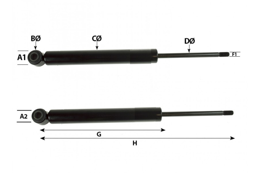 * Stabilus Dimensions on drawing (mm);A1 - 18A2 - 24B - 12C - 29D -10F1 - M10G - 320H - 530